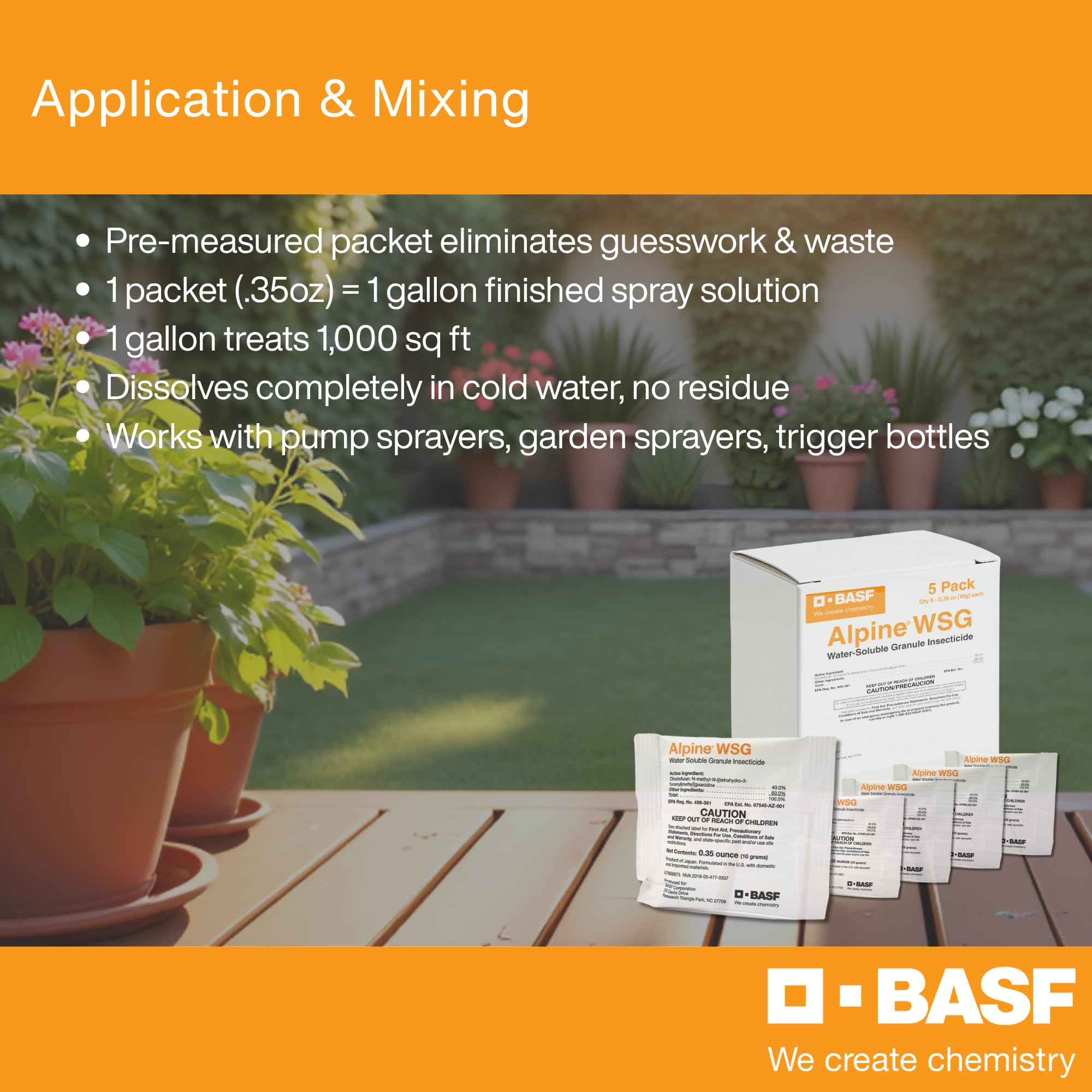 BASF Alpine WSG Insecticide, Water Soluble Granules for Indoor & Outdoor Pest Control, Kills Ants, Flies, Bed Bugs, German Cockroaches – 5 x 0.35 oz Packets (Each Makes 1 Gallon for 1,000 sq ft)