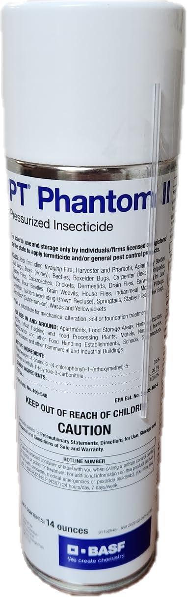 BASF PT Phantom II Pressurized Insecticide Spray, Kills Ants, Cockroach, Bed Bugs & More, Ready to Use, Non-Repellent for Crawling or Flying Insects, 14 oz